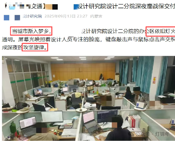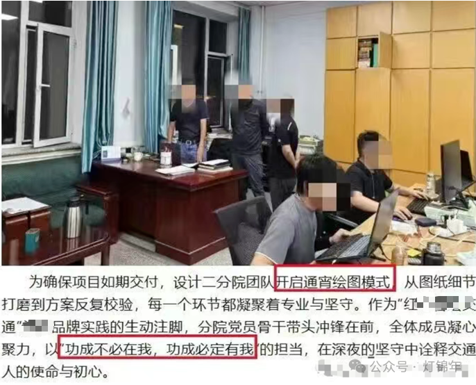 无独有偶,这个月,内蒙某设计院也如法炮制,大肆宣扬其设计分院深夜鏖战加班的“壮观”场景。