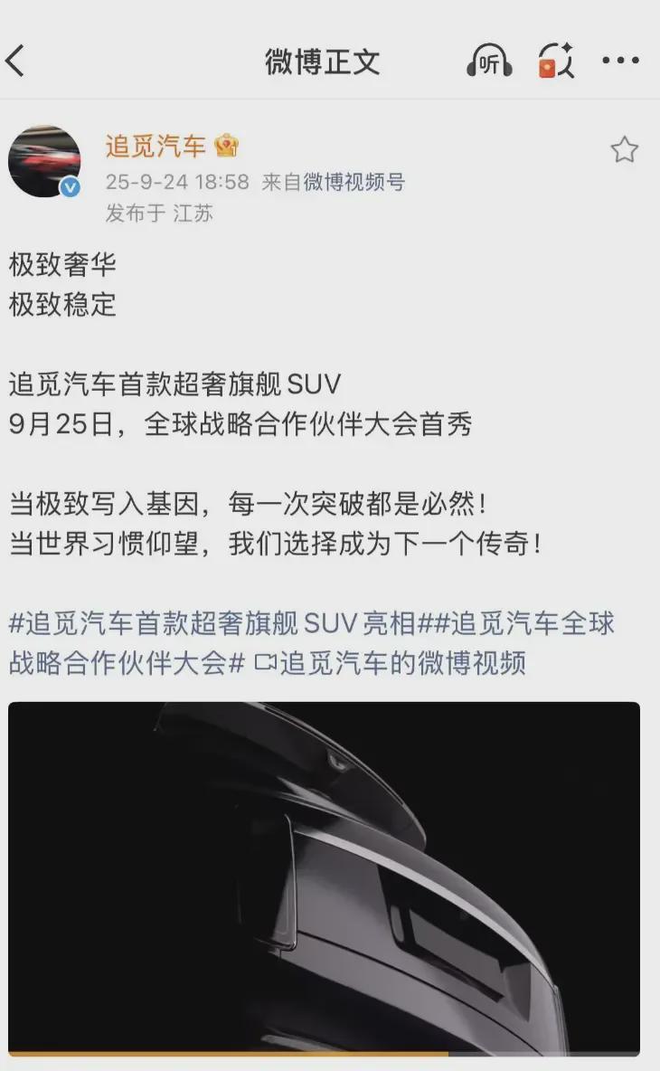 【追觅汽车首款超奢旗舰SUV即将亮相,计划2027年上市】9月24日获悉,追觅汽车将在首届全球战略合作伙伴大会上对外展出第二款车型——家族首款超奢旗舰SUV。追觅官方介绍,这标志着其“性能纯电轿跑+超奢旗舰SUV”的多产品矩阵正式形成,追觅汽车两款产品均计划2027年上市。(界面新闻)