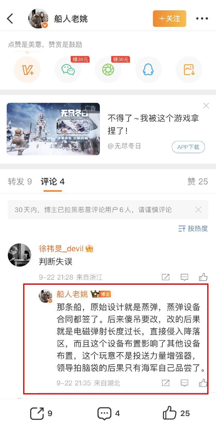 然而,在这军民同庆、国家荣耀的时刻,却有一些人坐不住了。微博知名博主@船人老姚就公然发表不当言论,阴阳怪气地称“那条船”存在设计缺陷,甚至将责任归咎于“领导拍脑袋的后果”。这种无端指责和抹黑行为,无疑是对中国海军指战员的极大不敬和侮辱。