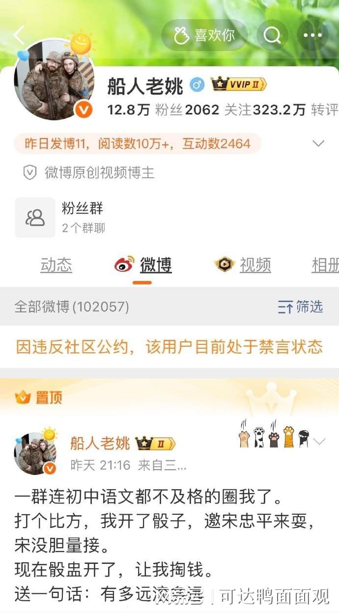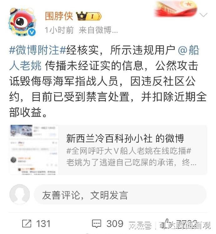 面对这种抹黑诋毁行为,网友们纷纷表示愤慨,并积极向平台举报投诉。很快,平台就对@船人老姚进行了严厉的处罚,包括禁言和扣除其近期全部收益。