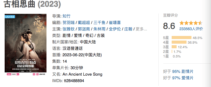从《青川入梦》到《照镜辞》,B站正将“小而美”策略移植至古装剧领域,通过轻体量矩阵与快节奏叙事吸引年轻观众。然而,在古偶赛道“红海化”与头部长剧、微短剧的双重挤压下,B站若想实现“出站”破圈,仍需在内容深度与制作质感上持续突破。