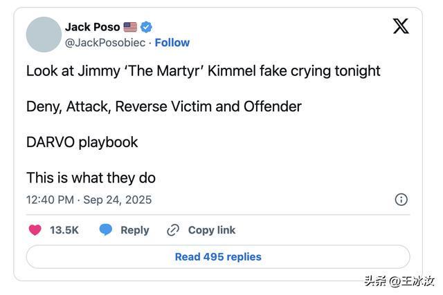 节目上周三因坎摩尔评论查理·柯克遇刺事件言辞失当被迪士尼紧急叫停。复播首期中,坎摩尔试图澄清立场称:“喜欢我的人会继续支持,不喜欢的也不会改变。我从未幻想说服任何人。”但这种表述非但未平息争议,反而成为舆论风暴核心——支持者视其为真诚表达,保守派则指责其“假哭”与“二次伤害”。