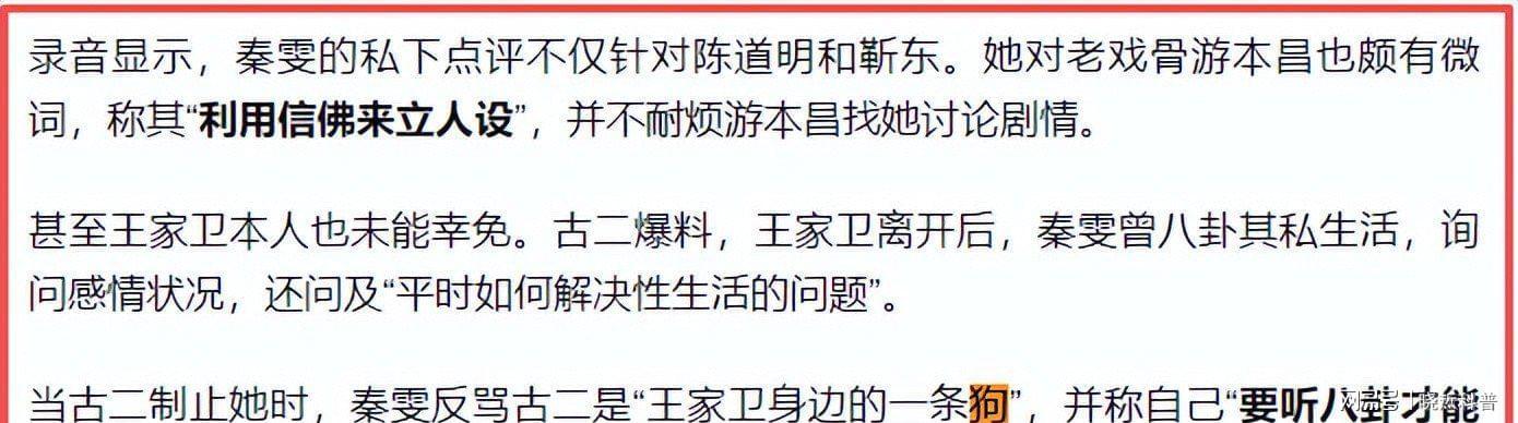 古二曾曝光一段录音,内容是秦雯与王家卫讨论演员时的对话。原来,《繁花》曾考虑邀请陈道明或靳东出演,王家卫也曾征询秦雯的意见。秦雯却表示,陈道明太装,习惯被人捧着,而靳东则因“诺贝尔数学奖事件”不适合。