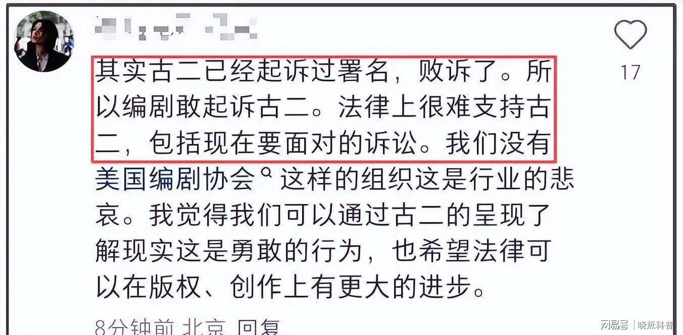 此外,网友觉得她作为一个编剧,最生气应该是“创作所属权”的问题,而秦雯偏偏要纠结“霸凌”等信息,这恰恰是反向证实了她的心虚。