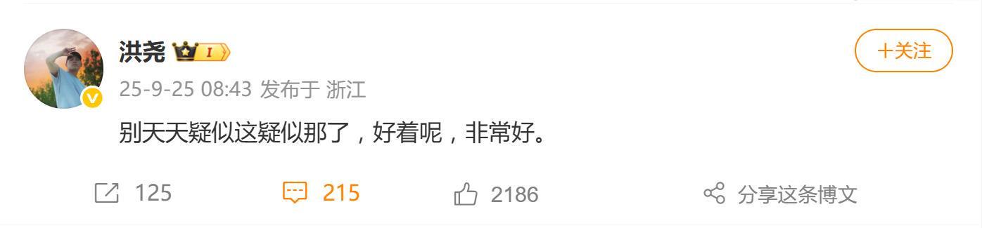 一则微博动态的“消失”,竟在娱乐圈掀起了新一轮“侦探热潮”。2025年9月24日,有网友发现演员洪尧与吴谨言去年发布的官宣结婚博文无法查看,瞬间引发“婚变”猜测。然而,这场风波在24小时内迅速反转,洪尧本人亲自下场辟谣,用一句“好着呢,非常好”直接怼回了所有质疑。