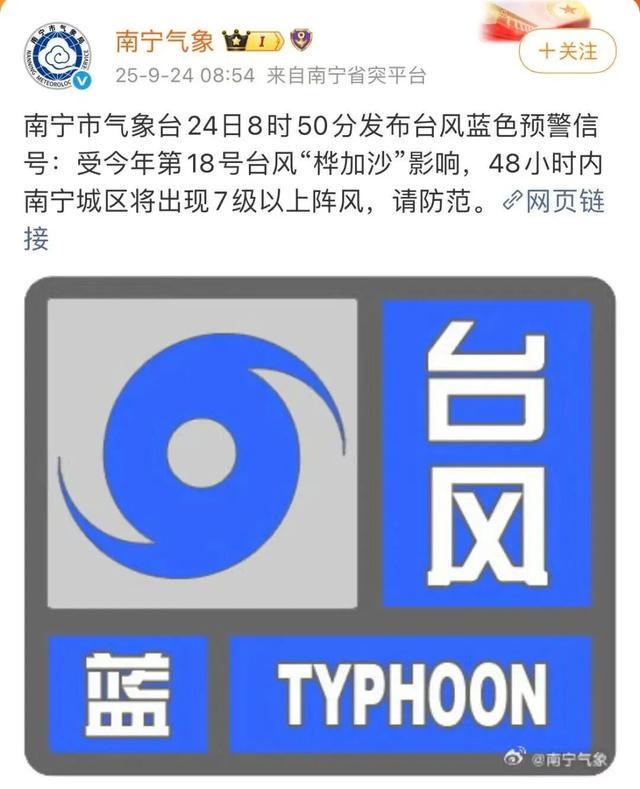 7级以上阵风!南宁发布台风蓝色预警信号。