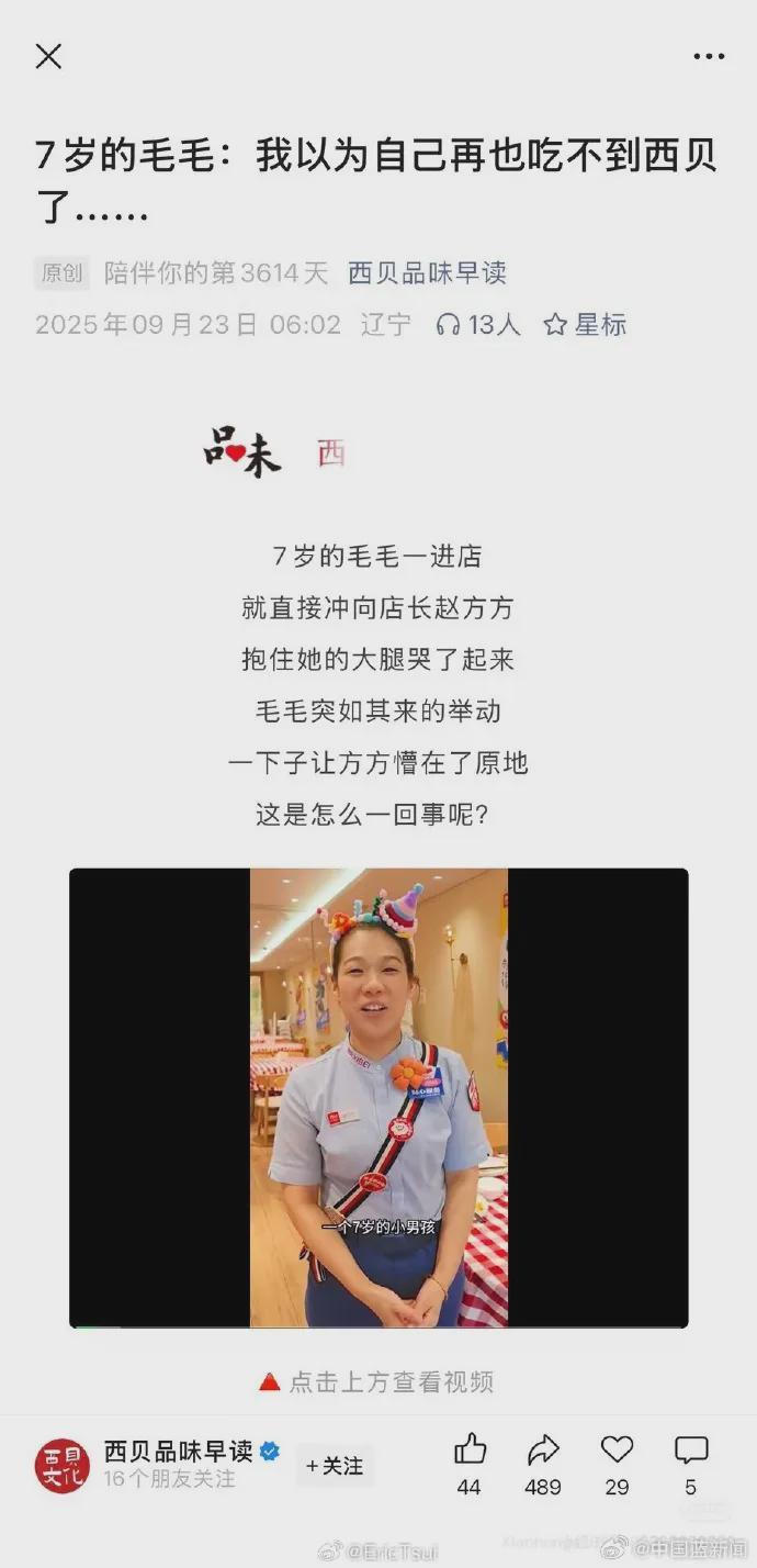 近日,西贝餐饮集团的一则公关举措引发了广泛关注与热议。9月23日,西贝公众号发布了一篇题为《7岁的毛毛:我以为自己再也吃不到西贝了》的文章,该文章迅速在网络上引起了轩然大波。