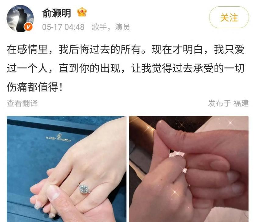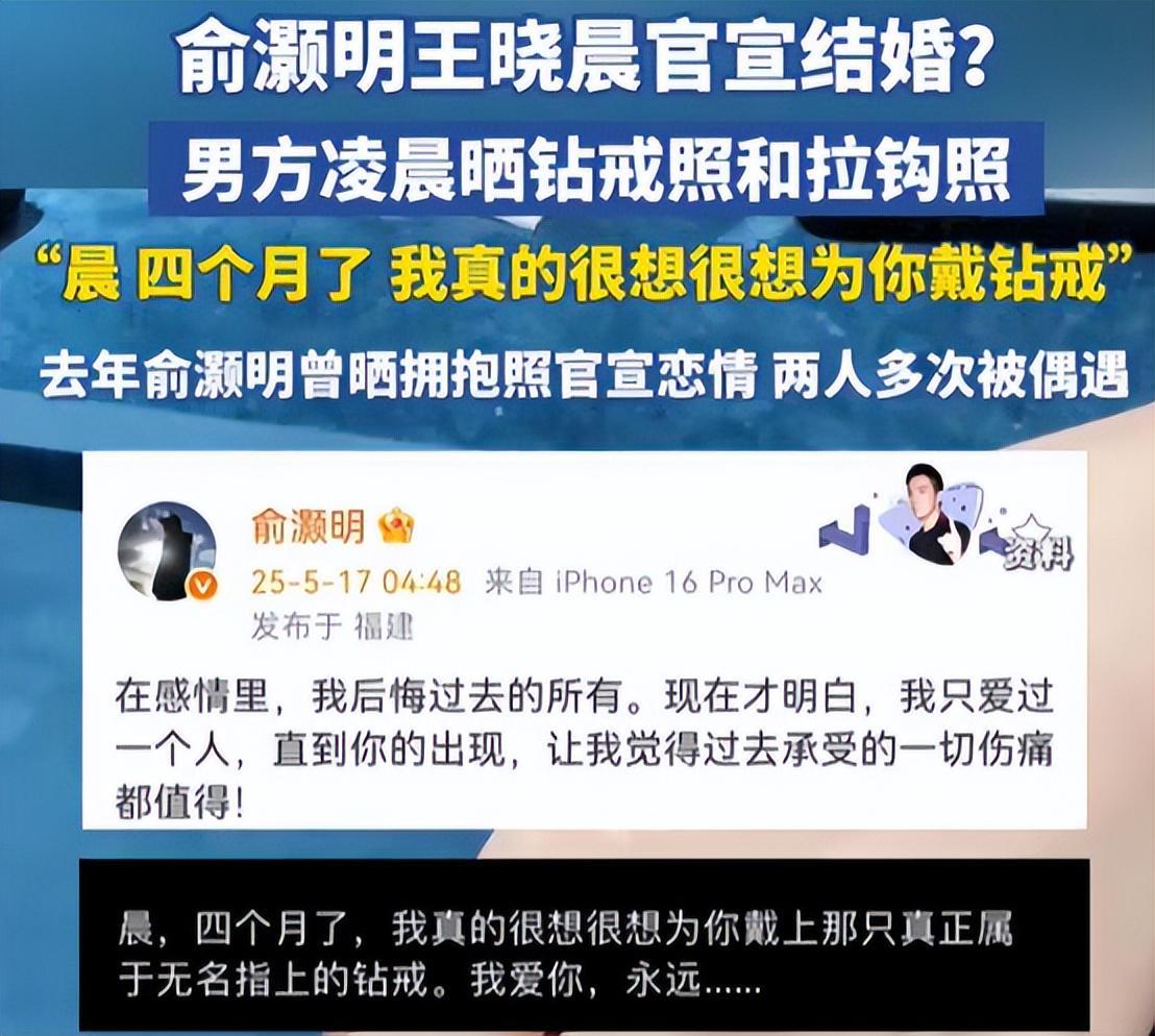 前有俞灏明深夜晒钻戒、写“晨”字暗戳戳示爱。