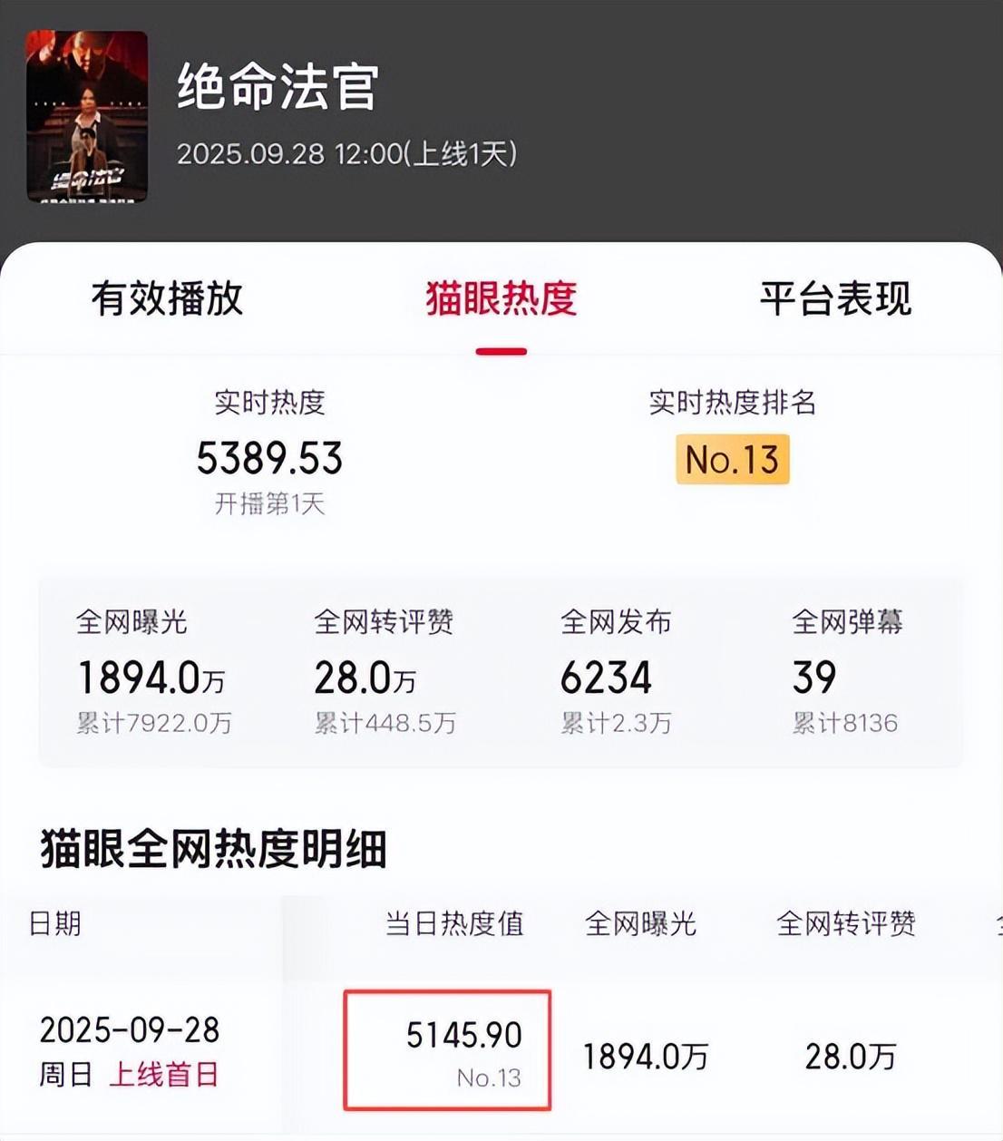 然而,今年的刑侦犯罪剧市场却显得有些落寞,真正能做到火爆出圈且口碑在线的剧集寥寥无几。就在观众期待新作时,张家辉携新剧《绝命法官》强势登场,仅播四集,收视率便突破5000,直接飙升至平台热榜第一,堪称收视炸裂!