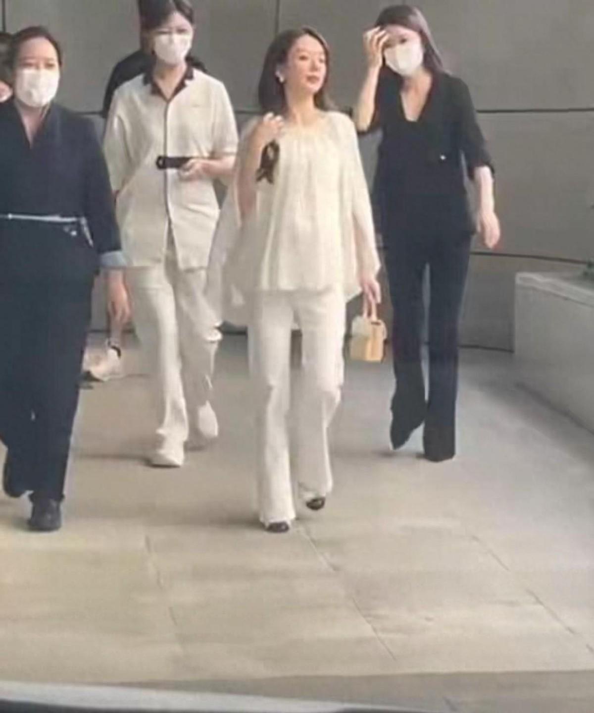 9月24号,有网友在香港圣贝拉月子中心门口偶遇方媛。38岁的她怀三胎,肚子高高隆起,却穿着一件白色套装,腿依然纤细,网友纷纷惊叹:“这哪像快生的人?”