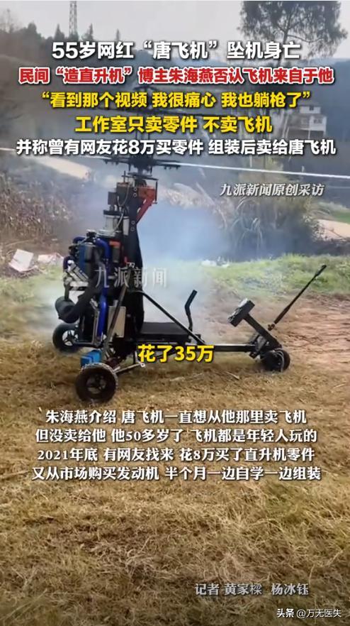 事后,不少网友好奇唐正兴的飞机到底是谁卖给他的。据“造直升飞机”网红博主朱海燕所说,唐正兴也曾找他买过飞机,但他觉得太危险,便拒绝了。