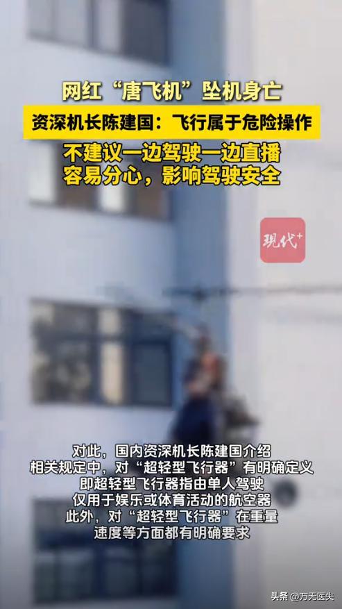 还记得那个曾宣称“四川只有我一个会飞共轴飞机”的网红“唐飞机”吗?近日,他在直播开飞机时突发坠机事故,不幸身亡,现场惨状令人揪心。
