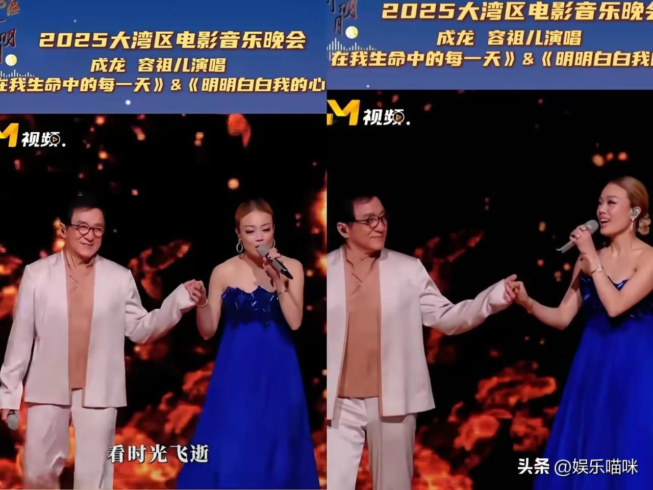 陈楚生太紧张,成龙和容祖儿基本上清唱,大哥最后忘词,索性来个祝大家中秋快乐。