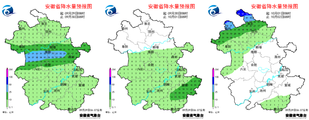 29日至30日,受冷空气影响,我省自北向南将有降水过程,其中29日沿淮西部和江淮之间北部部分地区有大雨。未来三天,全省逐日降水量预报显示,降水区域将逐渐南移,强度有所减弱。