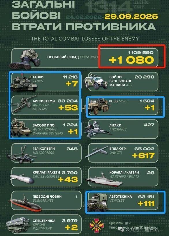 2025年9月29日,俄乌冲突进入第1314天。过去24小时内,双方在无人机攻防、能源设施打击及战场态势上持续升级,以下为关键事件梳理:
