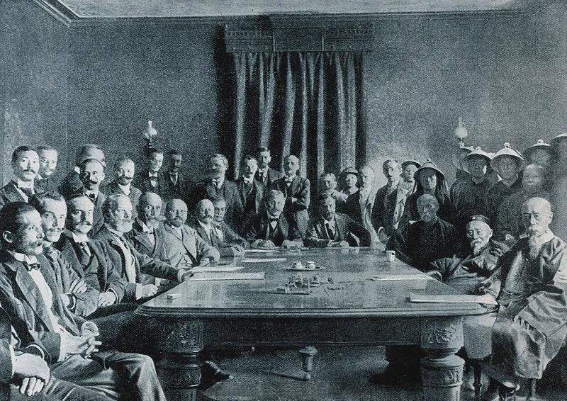 这是一张载入历史的1901年《辛丑条约》签字现场照片,中国人坐在一众外国人对面,低声下气,委曲求全。50年后的1951年,新中国已经成立,中国与美国为首的“联合国军”坐在一起停火谈判,我们会给50年后的中国人留下一张什么样的照片?