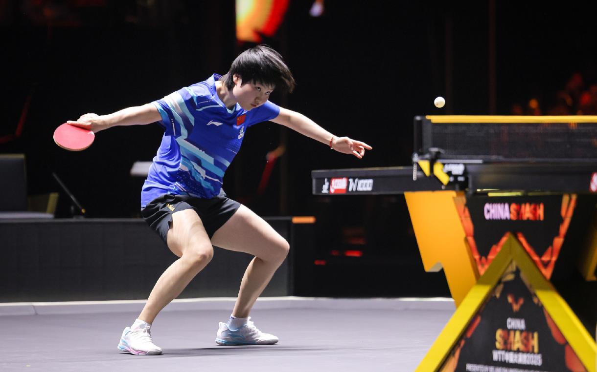 当日焦点战中,世界排名第一的孙颖莎迎战队友朱思冰。比赛呈现一边倒态势,孙颖莎以11-4、11-3、11-3连下三城。首局2-2后连得6分拉开差距,第二、三局通过正手强攻持续压制,朱思冰单局最高仅得4分。这位反手生胶削球手虽从资格赛连胜四场晋级(包括3-1逆转张默),但正赛中暴露出旋转预判不足的问题。赛后孙颖莎肯定了对手进步,并分享打削球心得:“需要耐心判断旋转,专注攻防转换,今天前三板和线路执行很成功。”