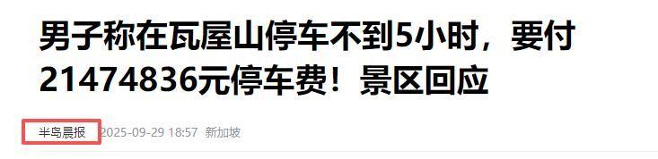 据这位游客介绍,当天他来到了眉山市的瓦屋山景区,仅仅停了5个小时,停车费一下子就窜到了2100多万,着实把他吓一跳。