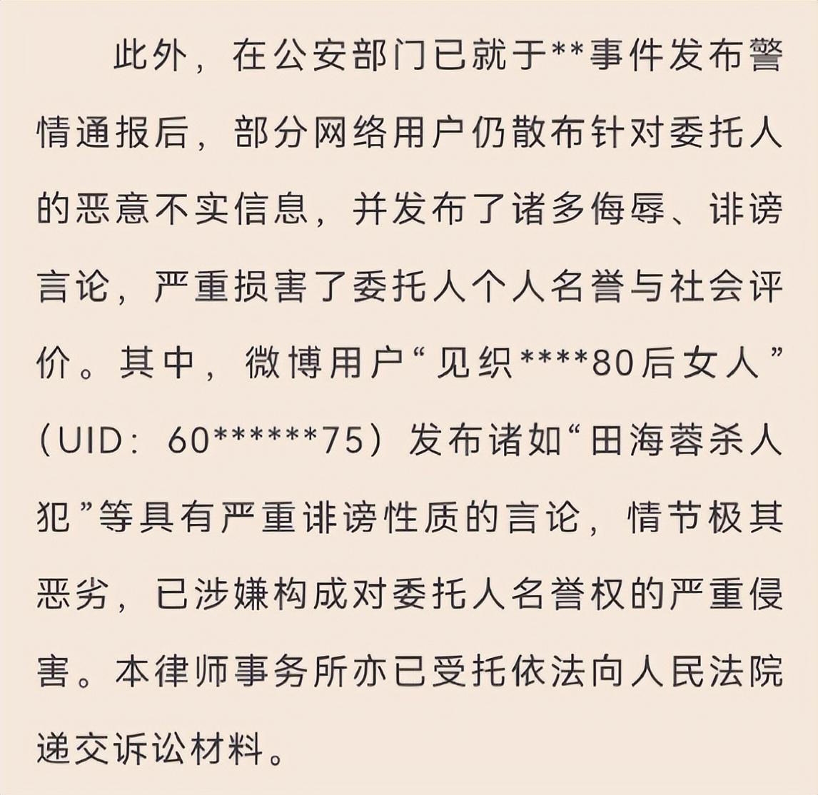 目前案件已进入司法程序,公众期待法律能还事件一个公正答案。正如田海蓉所言:“网络不是法外之地,每个人都应为言行负责。”