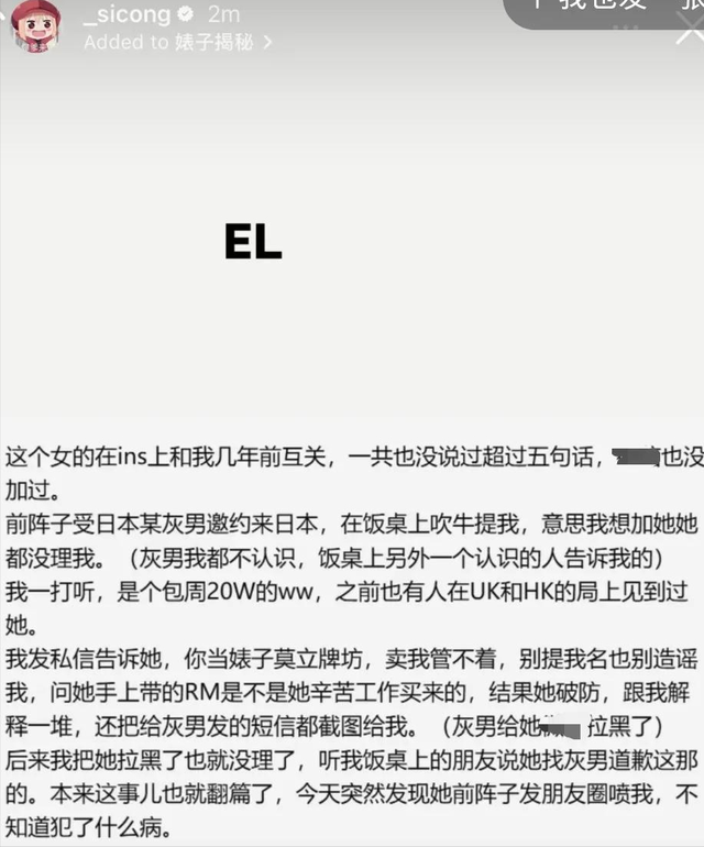 据王思聪披露,他与该女网红虽早有互关,但实际交流不足五句。事件导火索源于女网红近期在日本饭局上的言论——她向某男性炫耀王思聪曾追求自己但遭拒绝。恰巧在场人士中有王思聪友人,将此话转告后引发王思聪调查。调查结果令其震惊:该网红被指存在包周20万元的交易行为,且曾在英国、香港等地的高端局中出现。