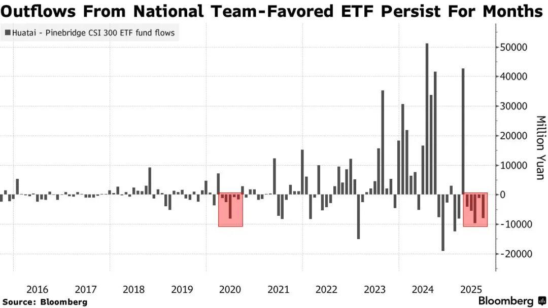 根据彭博社最新数据,一只被视为国家队“御用”的ETF产品近期出现自2020年以来的最长资金流出周期,这一动向引发市场对政策转向的广泛关注。