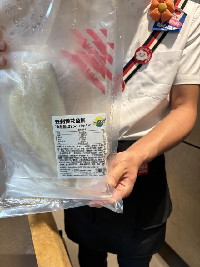 不过记者也注意到,“嫩烤DHA大黄鱼”仍使用冷冻食材。厨师解释称,大黄鱼需借助专业设备进行X光去刺,门店不具备相关条件,因此仍需以预处理冷冻方式配送。