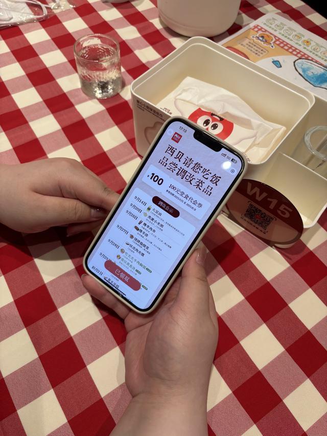 记者在店内了解到,多数就餐顾客是被西贝近期推出的100元堂食代金券所吸引。该优惠活动于9月24日启动,旨在通过线下发放通用代金券提振客流。