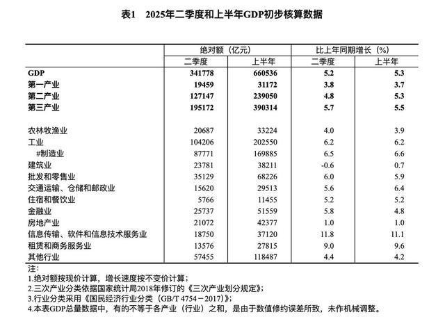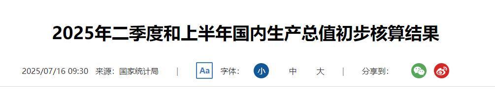 2025年二季度和上半年国内生产总值初步核算结果 2025/07/16 09:30来源:国家统计局