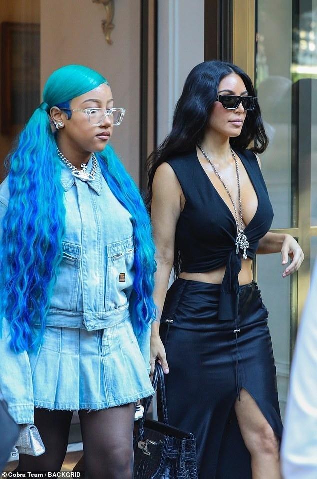此次现身,诺丝韦斯特以蓝色麻花辫造型惊艳全场。细心的网友发现,其发长从上月及腰骤增至腿际,疑似佩戴假发。这种突破传统的发型选择,与母亲金卡戴珊的时尚基因一脉相承。