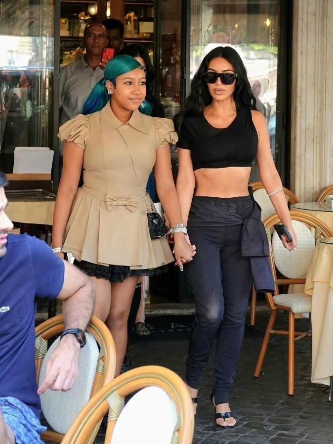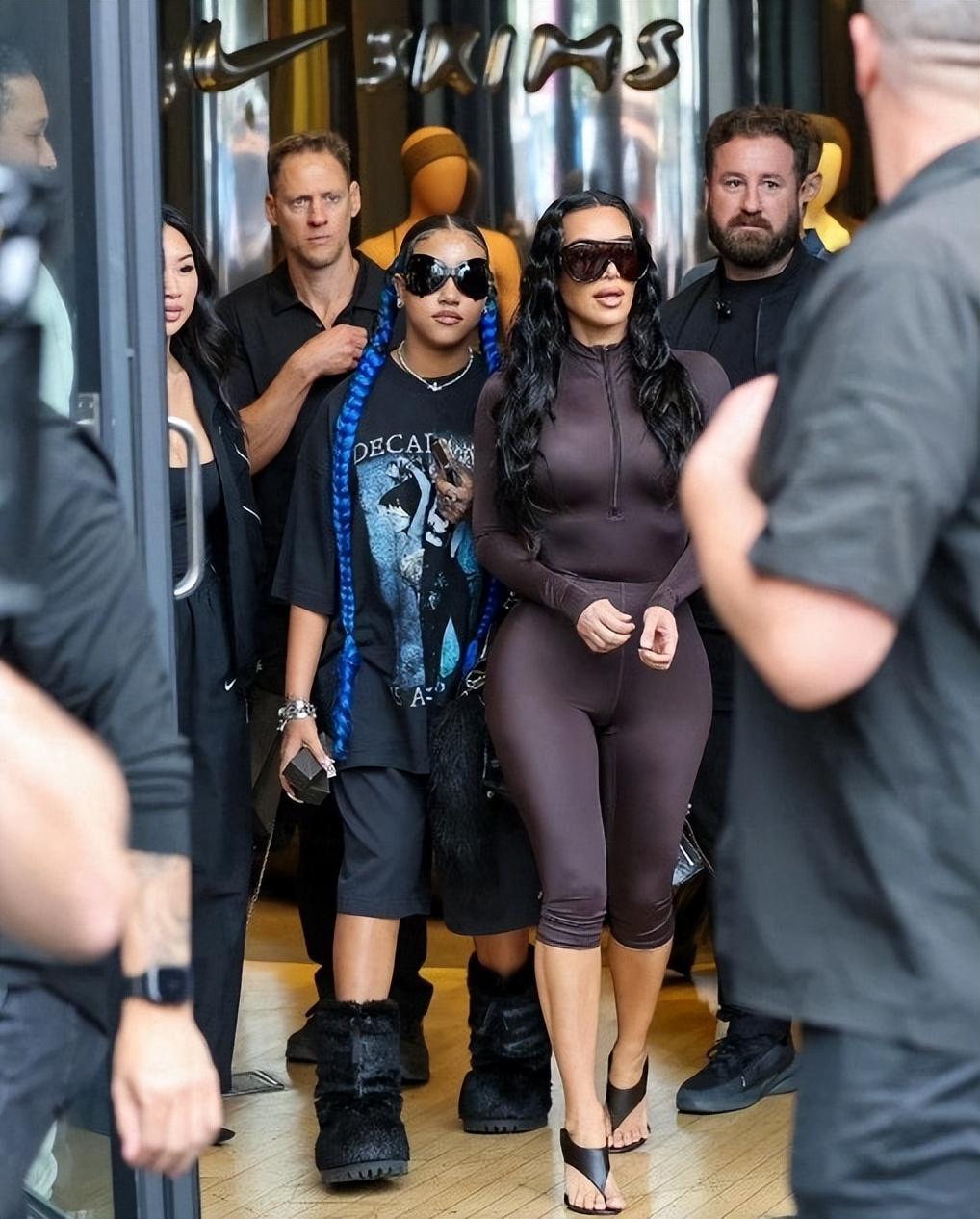 在卡戴珊家族阴盛阳衰的格局下,诺丝韦斯特的早熟显得顺理成章。160cm的母亲与尚未超越其身高的女儿,构成有趣的身高对比。而手腕双表、夸张美甲等细节,都在诉说着这个12岁少女对自我表达的强烈渴望。