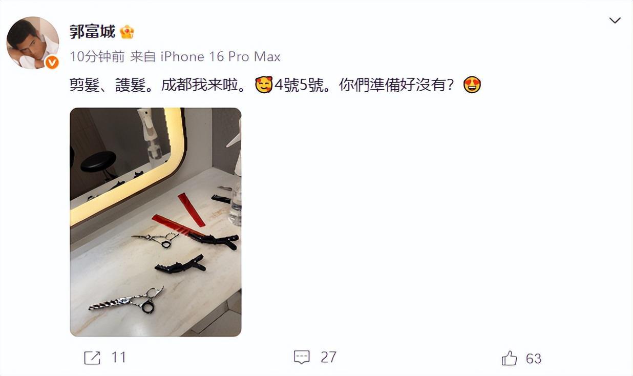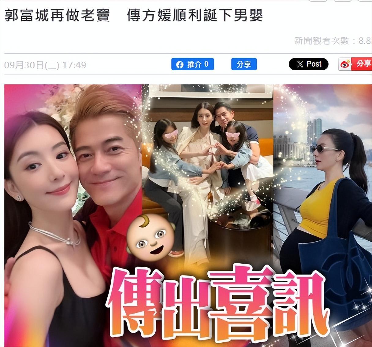 在港媒爆料后的半小时内,郭富城在社交媒体上发文,透露自己即将前往成都演出。不过,他并未在文中提及妻子方媛生娃一事。有分析认为,这可能是为了避免过多关注影响方媛出院的安排。