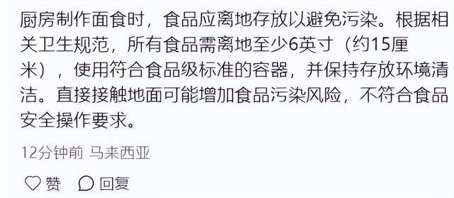 更令人震惊的是,网友拍摄的视频显示,机器不仅公开摆放,而且缺乏基本的遮挡措施,连塑料布都未使用。此外,按照食品安全规定,面食制作过程中食物应离地面至少15厘米存放,并使用符合标准的容器。然而,西贝餐厅内装筱面的盘子却直接放置在地上,显然不符合卫生要求。