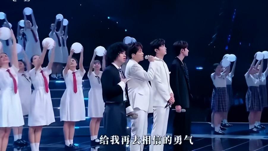 另外三个人也没逃过,颜人中开头就气虚,江信熹独唱的时候不稳,四个人合唱的时候和声乱成一团,观众都调侃说像KTV自由发挥,甚至被叫做史上最难听版本。