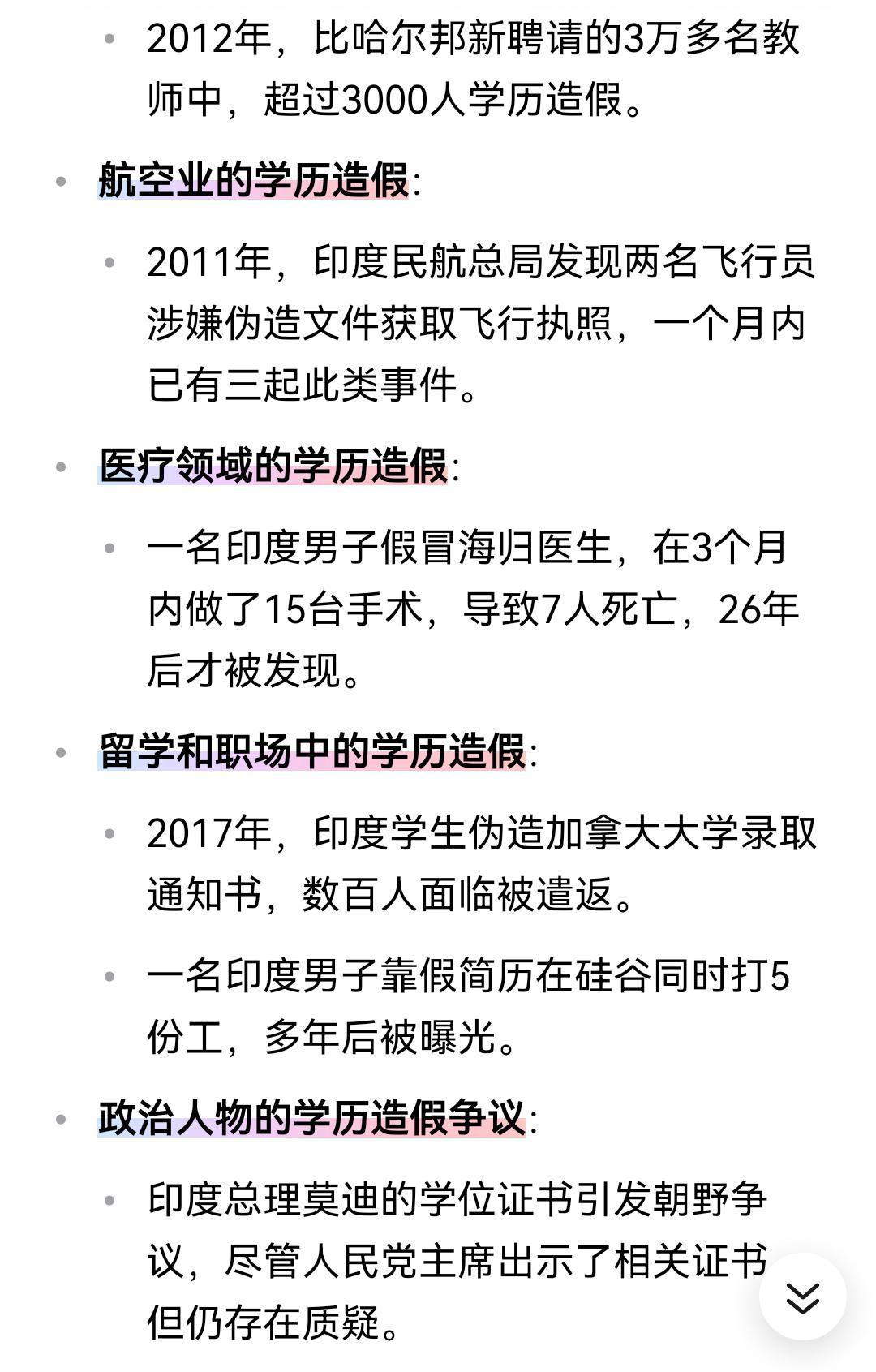 第五,印度的“学历造假”和“专业包装”问题严重。2022年,印度北方邦的体育教师招聘考试中,203名被录取者中有202人涉嫌伪造学位证书,这些证书来自希科哈巴德js大学。更令人震惊的是,著名的维亚帕姆丑闻(2013年曝光)背后还涉及不少权贵,涉案价值高达几十亿。维亚帕姆是印度中央邦职业考试委员会,专门负责医科院校入学考试、警察、教师和税务员等公职考试。然而,里面的作弊行为猖狂至极,有直接出售试卷的、有伪造答题纸的、有雇人代考的、还有操纵考生座位甚至改分数的。