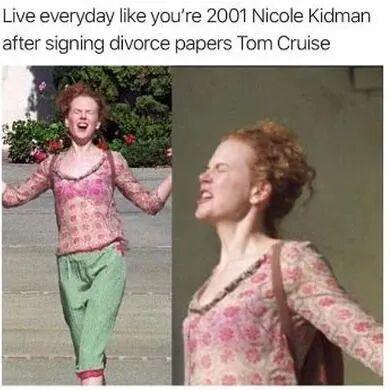 2001年,奥斯卡影后妮可·基德曼跟阿汤哥离婚,她被拍到上面的照片,“脱离婚姻樊笼,一朝复返自由”的爽感溢出屏幕.....