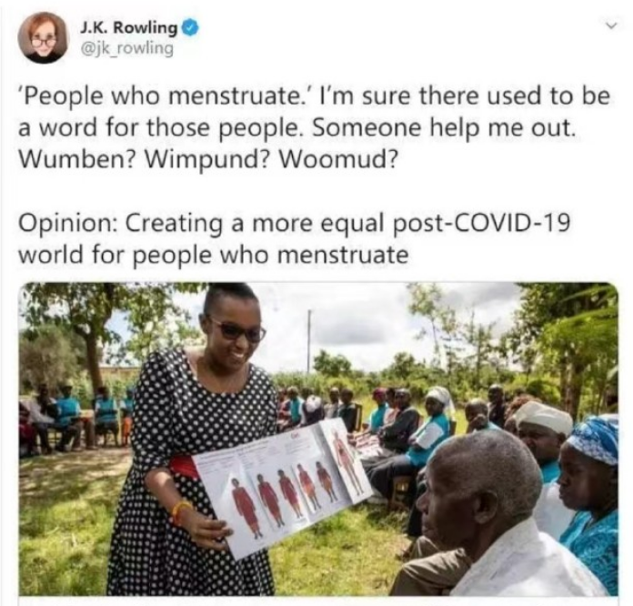 这句话当时被解读为是支持网友对反对跨性别者J.K.罗琳的声讨。
