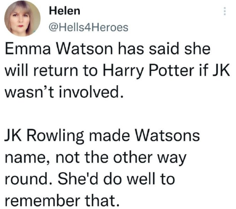 她先自我剖白。说尊重演员和自己持不同观点,而自己即便遭遇最严重的网暴时也从未想要指责艾玛,甚至拒绝谈及此事,想保护这群从小看着长大的孩子们。