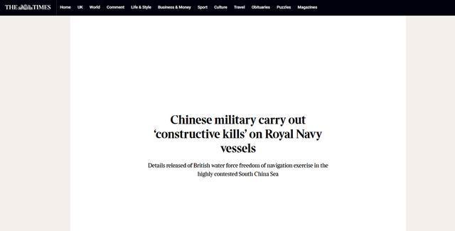 更可气的是,英国媒体报道中,一名参与“威尔士亲王”号穿越南海的军官竟发出挑衅言论:“我知道他们在瞄准我们,但他们不会真的开火。”“他们越多的瞄准我们,我们就越能了解他们的作战模式。”