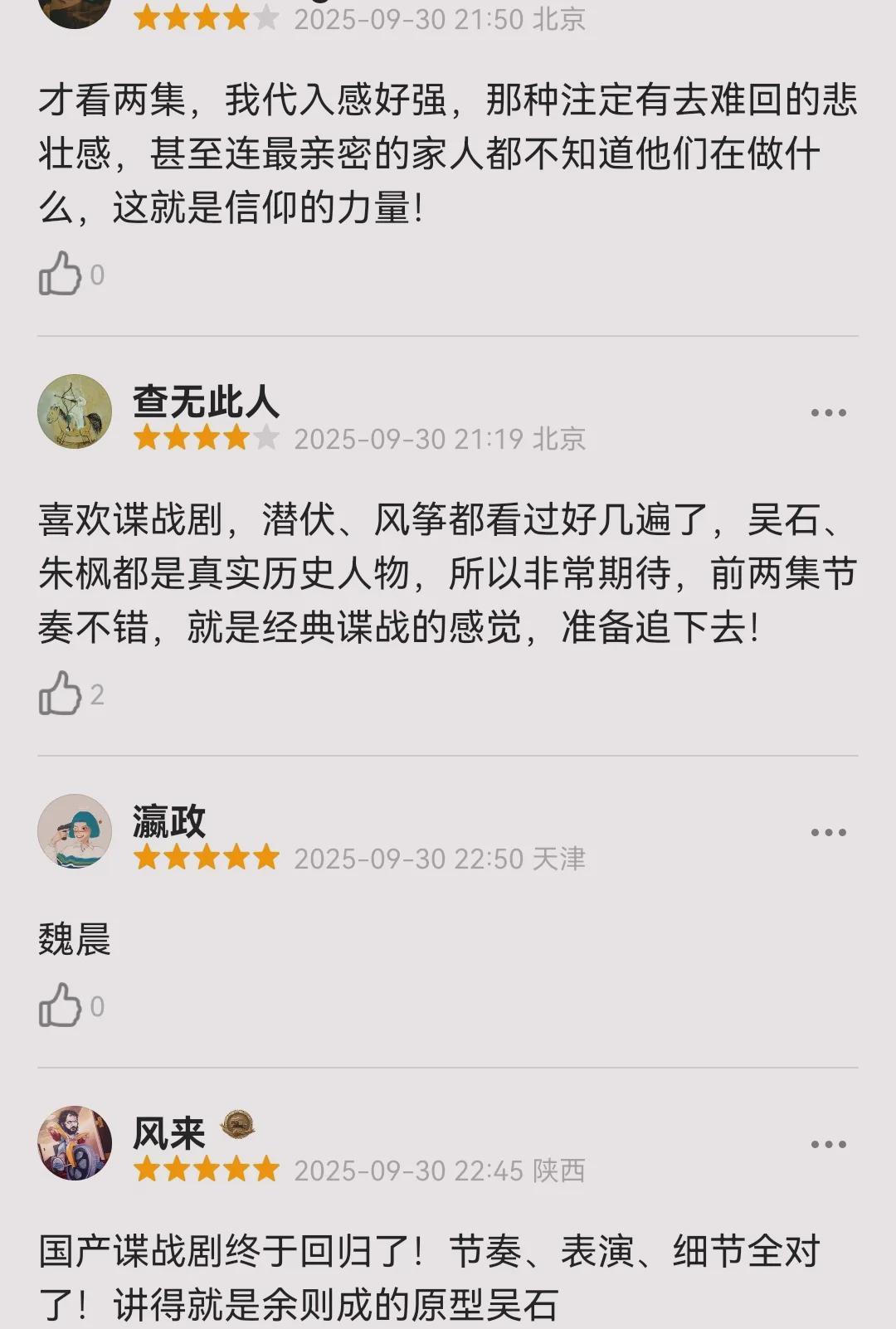总之,《沉默的荣耀》首播表现抢眼,剧中除了个别演员外,其余实力派演员演技都在线。其后续剧情与演员表现都令人期待,不多说,一起继续追剧吧!
