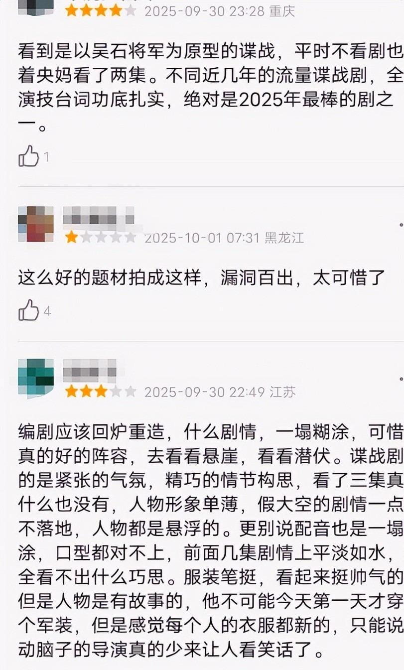 【谍战逻辑遭质疑】剧中金门战役情报传递情节成为争议焦点。当吴石得知国民党增派六万精锐时,观众质疑:'厦门到金门距离如此之近,解放军用望远镜都能看到敌军动向,何需专门传递情报?'这种脱离实战逻辑的设定,让谍战剧应有的高级感大打折扣。