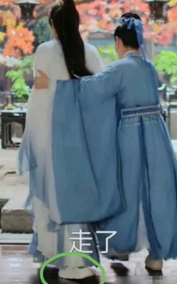 在正片镜头里,主角萧秋水一转身,露出了脚上的洞洞鞋。