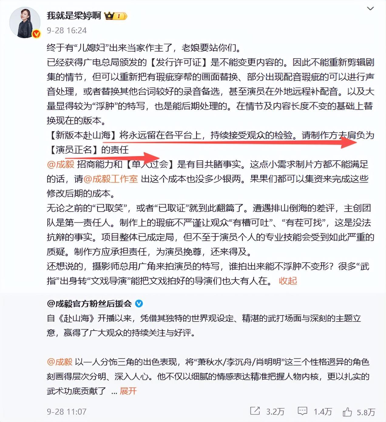 “【新版本赴山海】将永远留在各平台上,持续接受观众的检验。请制作方去肩负为【演员正名】的责任。”