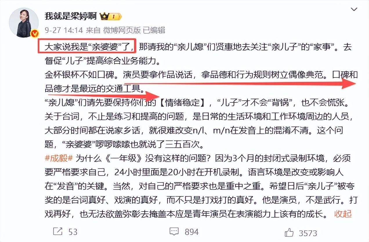 在铺天盖地的批评声中,梁婷似乎成了成毅粉丝的“救命稻草”,甚至有粉丝将她视为“亲婆婆”。
