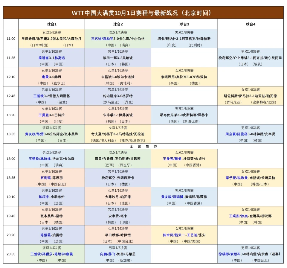 随着正赛第四天上半场结束,国乒在单双打项目均展现强大统治力。晚间场次将上演更多焦点对决,国乒能否延续强势表现?日本队能否止住颓势?让我们持续关注赛事进展。