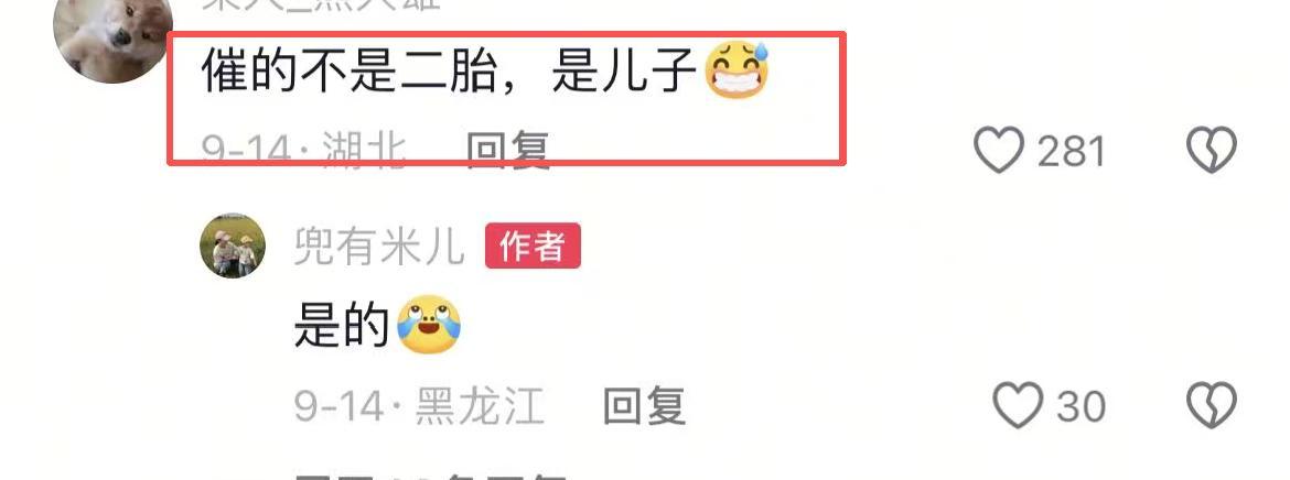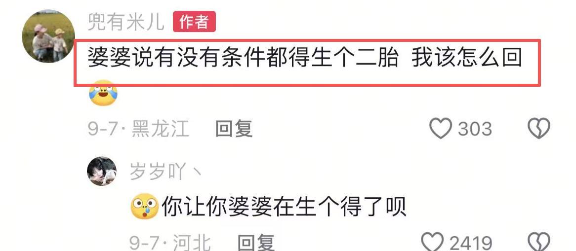 评论区,女子回复,称老人一直都想要二胎,不过她和丈夫商量好了,暂时不要。