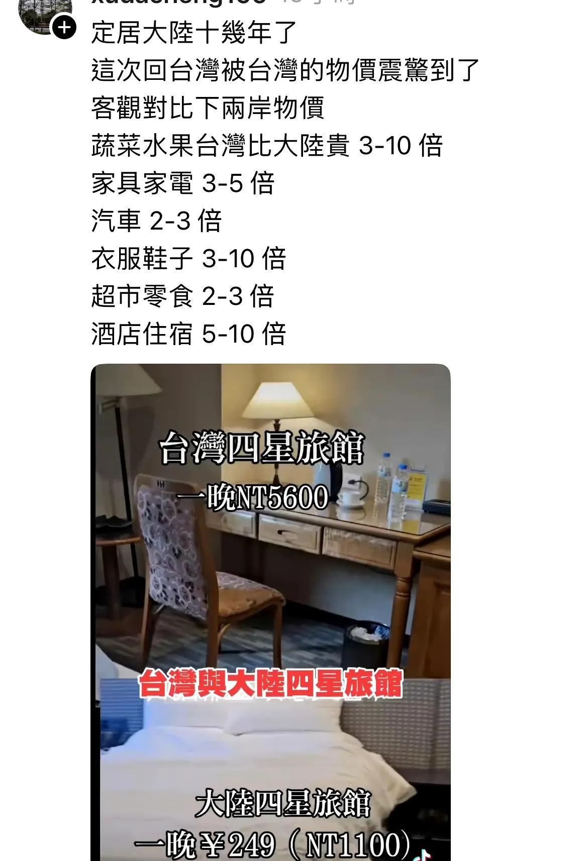 数据对比最具说服力:台湾卡罗拉售价是大陆的3倍,电动机车价格是大陆同类产品的5-8倍。这种价格差异直接导致台湾民众实际生活水平下降。正如'股神'巴菲特所言:'能生活在中国有史以来最好的黄金时代,实属幸运。'