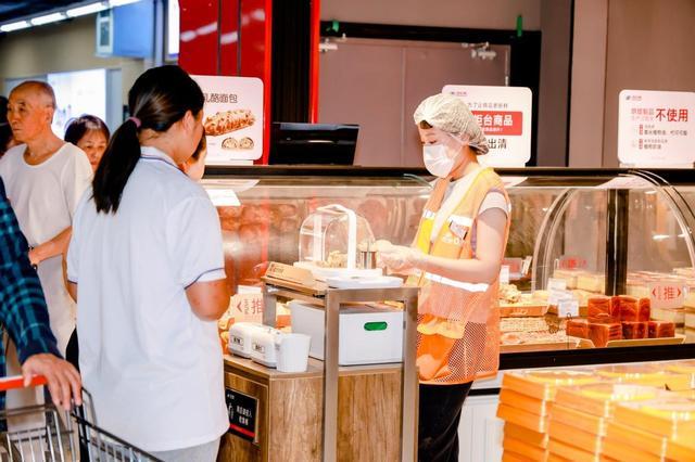 借鉴北辰店现制熟食60%渗透率的成功经验,梅江店大幅扩容熟食烘焙区。熟食区里,现制烤鸭、肉蛋堡、风味凉皮、卤猪蹄全是明厨现做,热气腾腾;烘焙区的核桃满满面包、丹麦酥、牛角包用料扎实,刚出炉的香气飘满整个卖场,不少市民试吃后直接下单,“给中秋家宴加道菜,也给孩子当零食。”