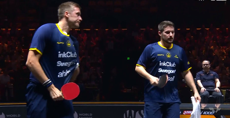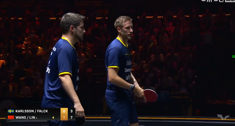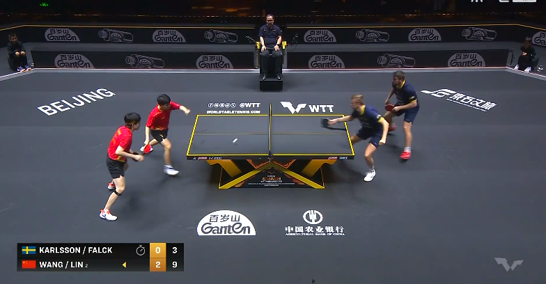 第三局成为完全一边倒的较量。王楚钦/林诗栋开局连得两分后,通过强势正手进攻将比分带至5-2,迫使瑞典组合叫出暂停。暂停归来,国乒组合攻势不减,7-3领先时彻底掌控比赛节奏。尽管对手在9-3落后时展开反扑,但王楚钦/林诗栋以10-4拿到赛点后,最终以11-5锁定胜局。