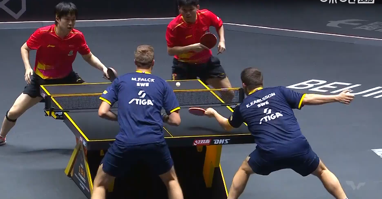 次局较量,中国组合延续火热手感,开局即以5-1压制对手。中局阶段,王楚钦/林诗栋通过精准落点控制,将比分扩大至8-4。随着10-4拿到局点,尽管瑞典组合挽救一个局点,但国乒组合仍以11-5再下一城,大比分2-0领先。