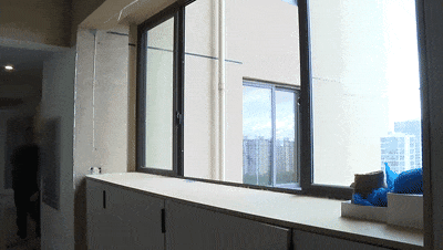 据胡先生介绍,他家北面有两个连廊,小房间的窗户正对着东边连廊。一个多月前,他下班回家时突然发现连廊上多出了一排高低不一的鞋柜。他立即联系物业询问情况,但物业表示并不知情。